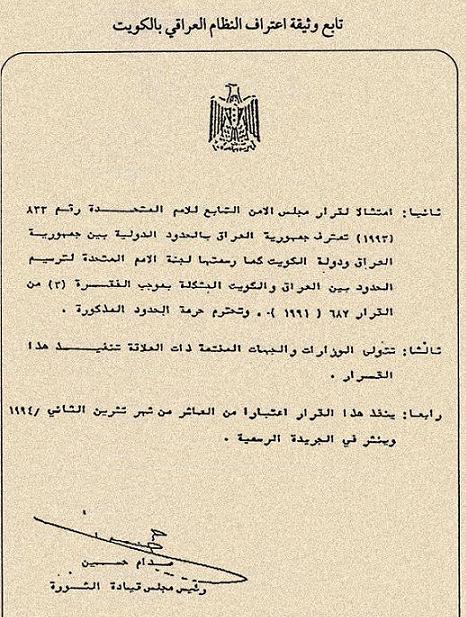 نص اعتراف العراق بسيادة دولة الكويت